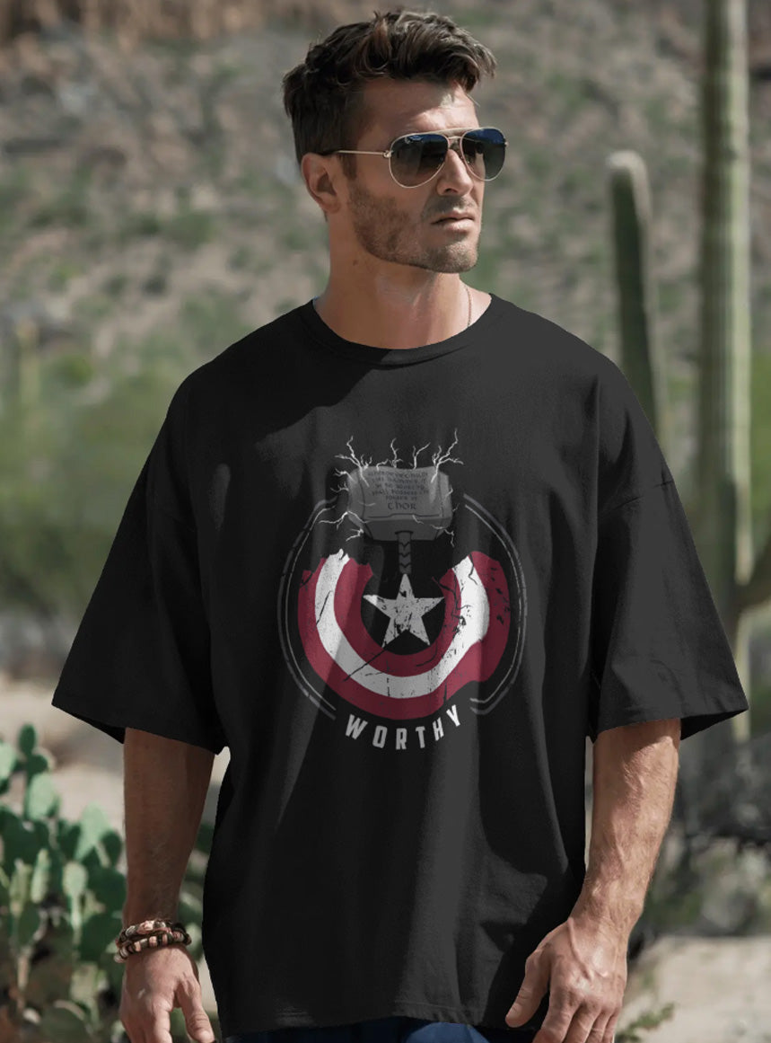 Thor Drop-Shoulder Sleeves Relaxed Fil Black T-Shirt