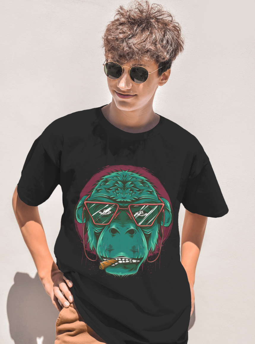 Upgrade your everyday essentials with our classic Monkey Print Regular Fit Black Tshirt Crafted from cotton, this t-shirt offers a soft, breathable feel that's perfect for all-day comfort. The timeless round neck design and regular fit make it a versatile staple—ideal for layering or wearing solo.